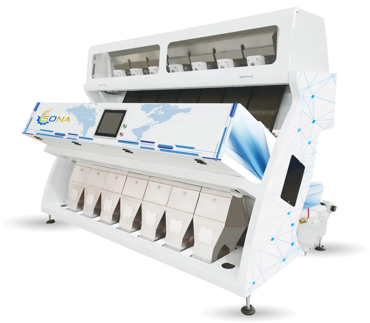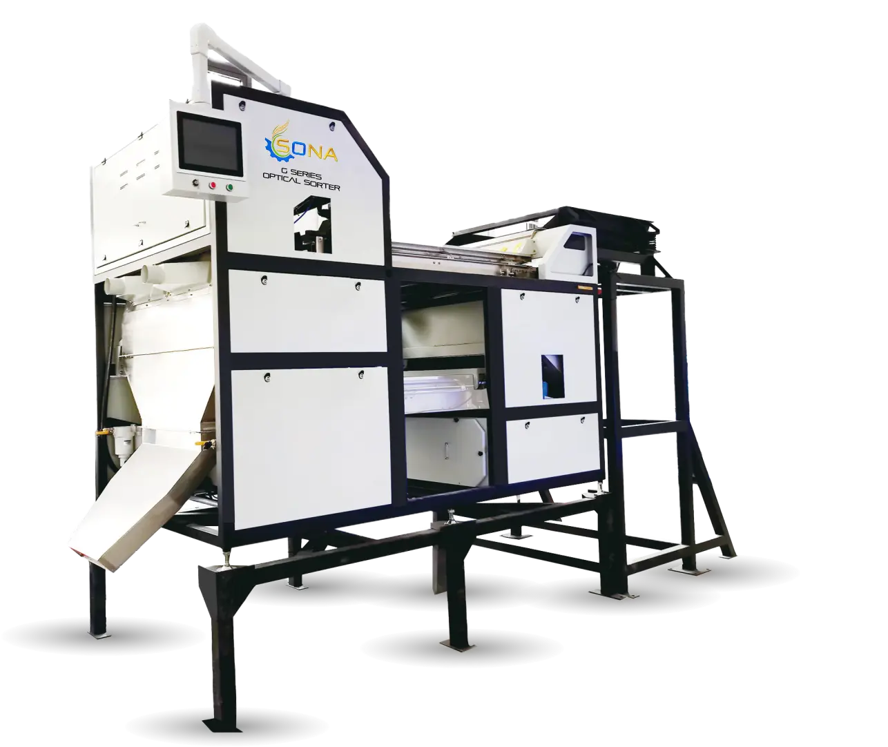 RELIABILITY AND DURABILITY: Built with robust materials and designed for long-term performance, the Sona Color Sorter is engineered to withstand the rigors of continuous use in demanding industrial environments.
